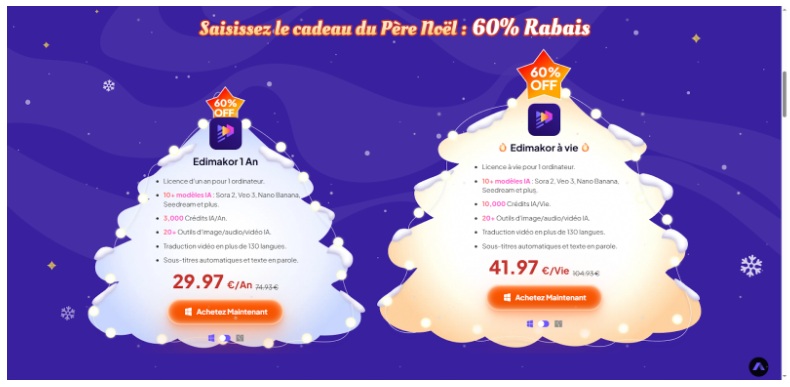 Edimakor annonce jusqu’à - 60 % sur la création vidéo IA pour Noël 2025