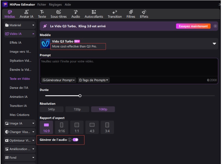 Vidu Q3 Turbo : audio-vidéo synchronisé et optimisation des coûts